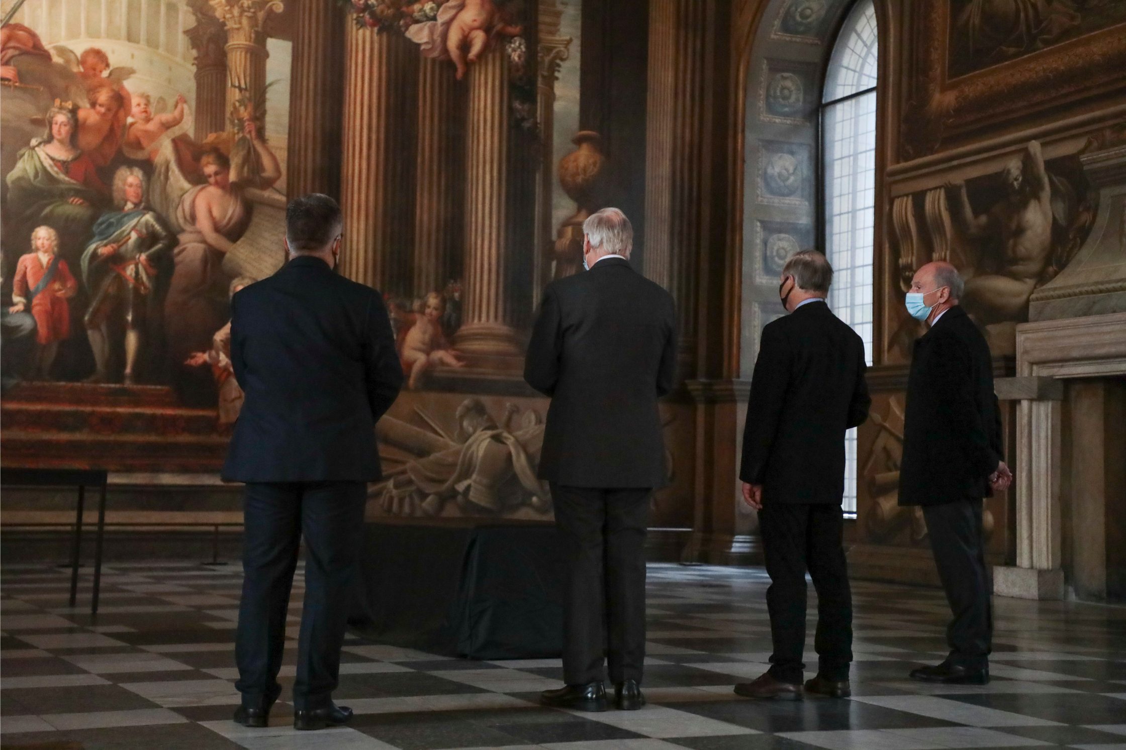 HRH The Duke of Gloucester visited the team accompanied by Old Royal Naval College Chief Executive, Matthew Mees; Chair, Tony Hales and Surveyor to the Fabric, Martin Ashley amongst other team members to see recent conservation and programming achievements.