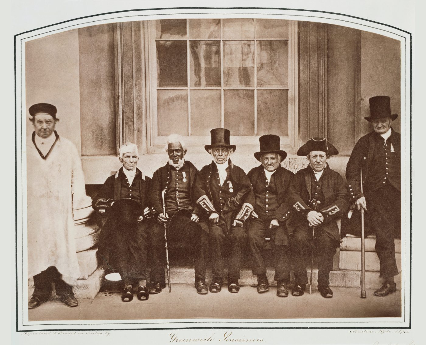 Many of the seamen who had served at Trafalgar were admitted to the Royal Hospital for Seamen at Greenwich and spent the last days of their lives as Greenwich Pensioners. A photograph taken by John Havers in 1854 (below) shows a group of Pensioners, some of them wearing their recently awarded medals. They include one of an unknown number of Black seamen who served in the British Navy at the Battle of Trafalgar.
